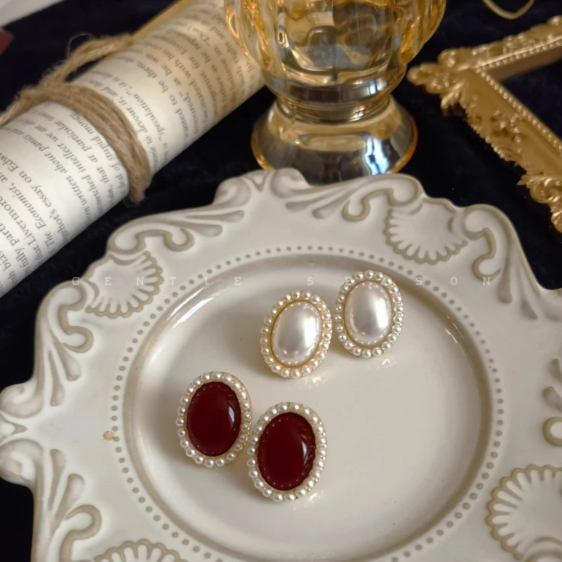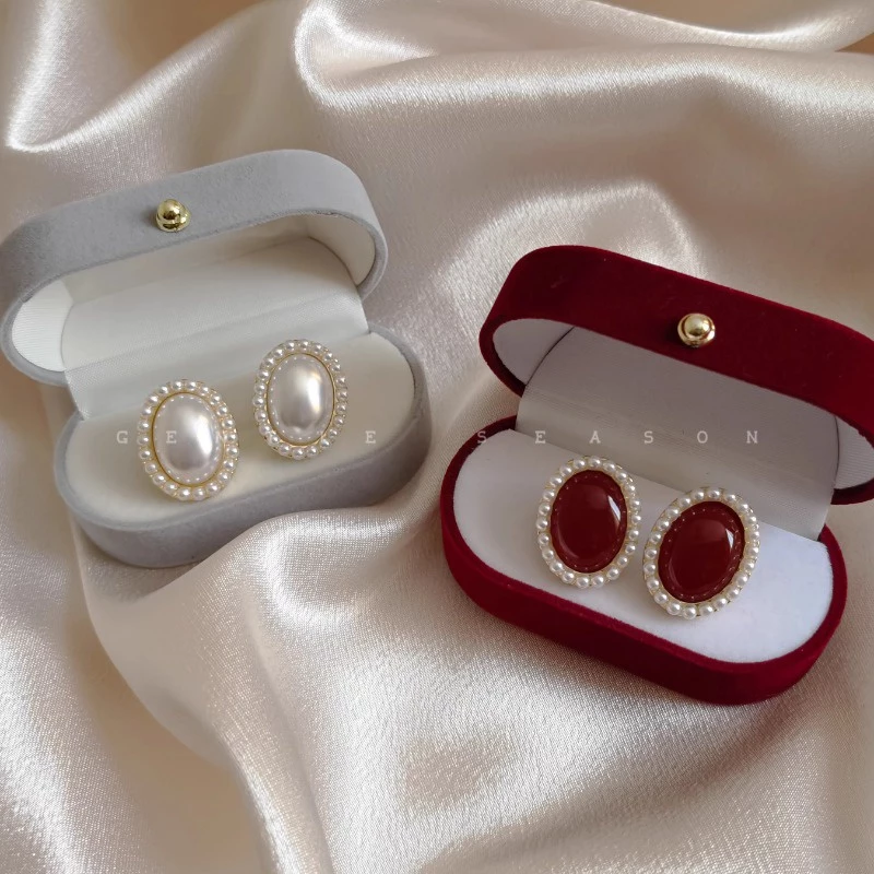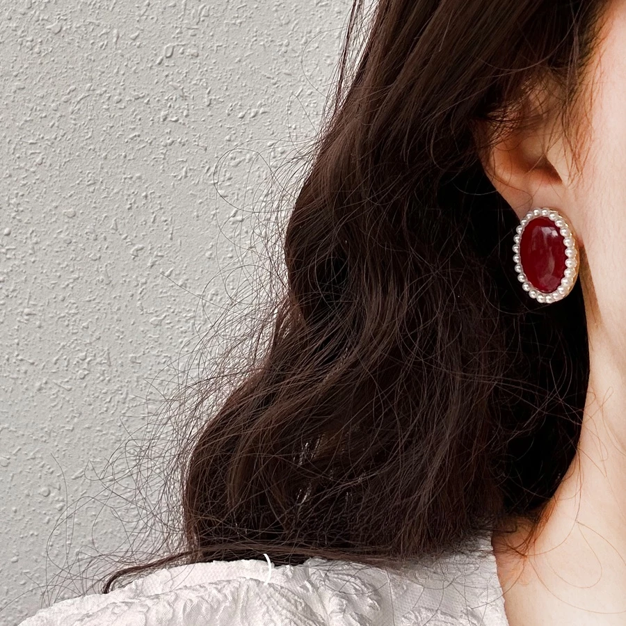 Add timeless elegance to your jewelry collection with this stunning Pearl & Red Oval Stud Earring Combo Set. Each pair features a luxurious oval center stone surrounded by a delicate border of mini pearls, giving a classy and sophisticated finish.